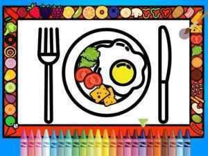 Cooking and meal preparing themed coloring game for kids with 4 different coloring pages that will encourage them to learn how to draw within the ..