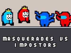 The man in the red and blue mask needs to escape from the spaceship? you must help them. watch out, only red colored impostors with red masks can ..