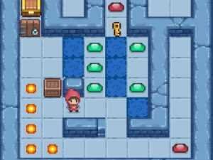 Slimoban is a variation of sokoban with slimes. But besides the boxes that you need to move, there are also monsters you can escape from or destroy with a fireball or by throwing them into the water. There are three types of slimes in the game: the green ones just stand still, they cannot be destroyed with a fireball, but they can be pushed into the water. Blue slimes chase the main character and they can be destroyed with a fireball and thrown into the water just like the green ones. Red slimes chase you and they can only be pushed in the water. Fireballs can also move blocks. If blocks fall into the water they destroy both the water and themselves. Some slimes do the same, others just get drowned. Fireball magic bottles and keys can sink as well. The game has 30 levels.Movings - arrows WASD screen buttons Idle - space idle button Shoot - click tap